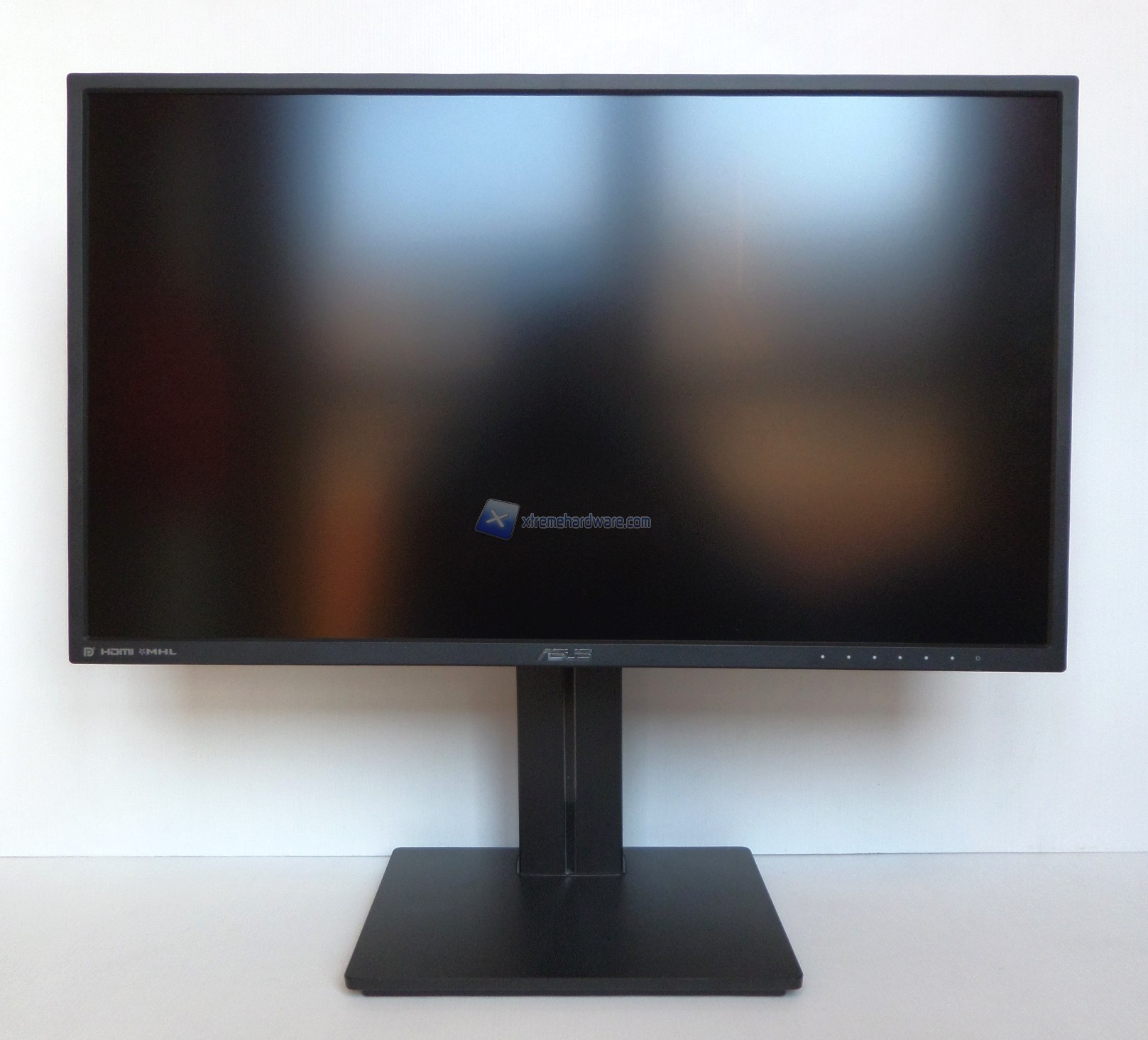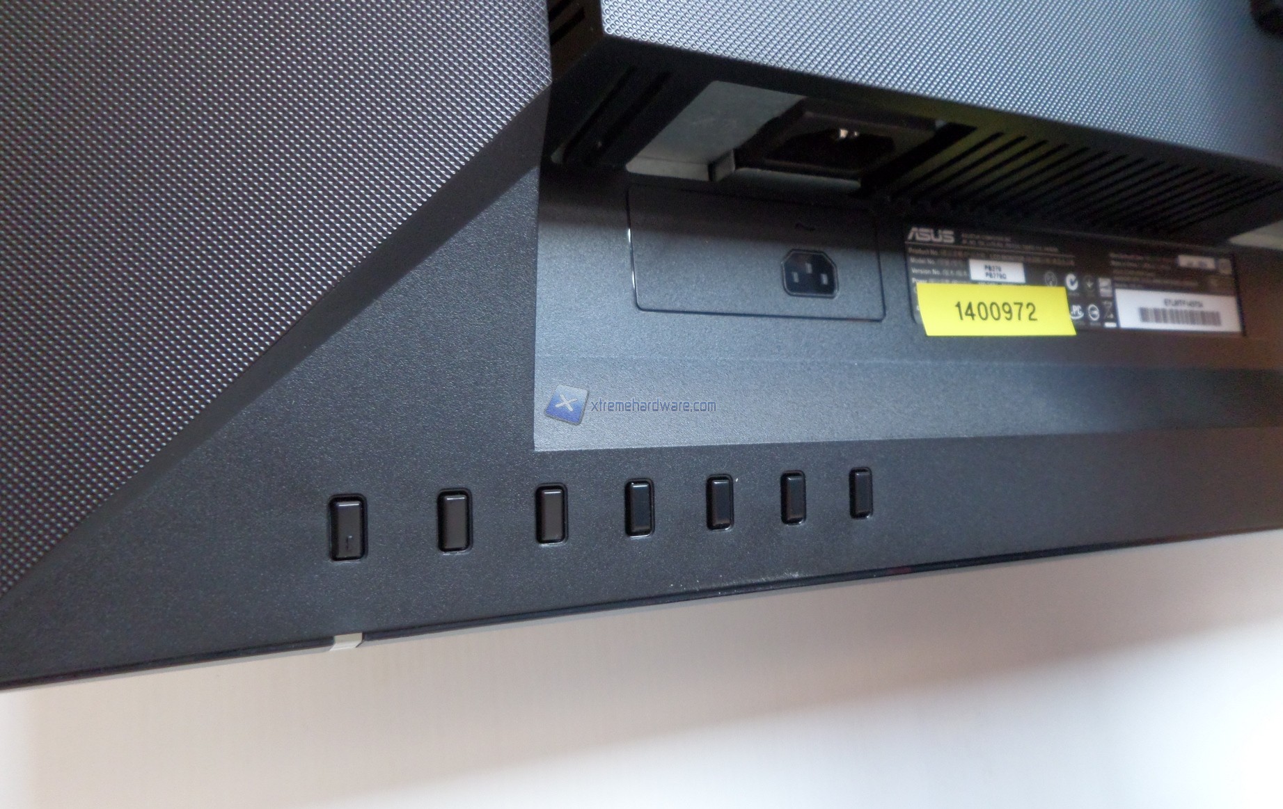 Frontalmente vengono riportati sei puntini indicanti gli appositi pulsanti posteriori per gestire il menù OSD dell’ASUS PB279Q; sono proprio dei puntini e non vi è un sistema di retroilluminazione. A questi tasti ovviamente si affianca il pulsante di alimentazione che presenta un rilievo differente per non confondersi durante la regolazione del menù; una bella chicca, visto che la distanza tra i pulsanti è la stessa e risultarebbe facile spegnere il monitor invece di accedere al menù. Sotto l’icona di alimentazione è presente il LED di stato; questo rimane acceso con una fioca luce bianca in condizioni operative e arancione in stand-by. Trovandosi orientato verso il basso non dà mai fastidio durante l’utilizzo, neanche in una stanza completamente buia. È possibile comunque disattivare il LED nel menù OSD (Impostazioni di sistema -> Indicatore alimentazione).